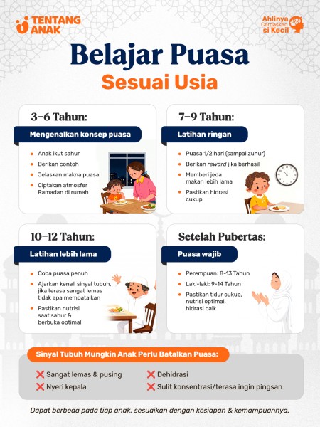 Setiap anak punya kesiapan berbeda, jadi orang tua bisa menyesuaikan dari konsep, kebiasaan, sampai latihan durasi. Yang terpenting, anak merasa didukung dan Ramadan jadi pengalaman yang menyenangkan.