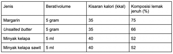Pilihan sumber lemak dan perbandingannya