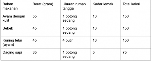 Contoh perhitungan pemberian lemak